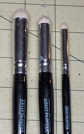 Also, quickly get a large flat brush to paint vehicles and larger models. Unlike using smaller brushes, it will save time and your sanity.